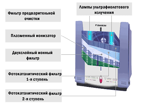 Предложенный инженерами DAIKIN фотокаталитический фильтр обладает значительным дезодорирующим эффектом. Его действие эквивалентно 500 кондиционерным фильтрам, дезодораторам из активированного угля, скорлупы кокосовых орехов.