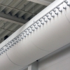 В системе смешанного типа Euro Air и ткань, и высокоимпульсный элемент являются активными компонентами. Как и в воздухопроницаемой системе, холодный воздух будет распространяться под текстильной системой, а высокоимпульсный элемент в это время будет осуществлять подачу воздуха в требуемую сторону. Текстильная система смешанного типа позволяет сконструировать такое решение, при котором уровень активности тканевой части может изменяться в зависимости от объемов воздуха, выходящего из высокоимпульсного элемента. Система смешанного типа Euro Air позволяет изменять объем воздуха, выпускаемого в конкретной зоне здания.