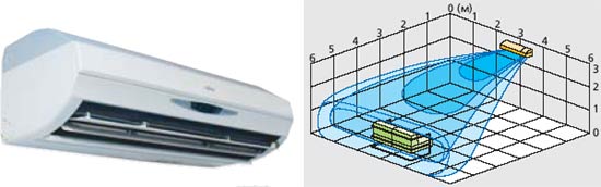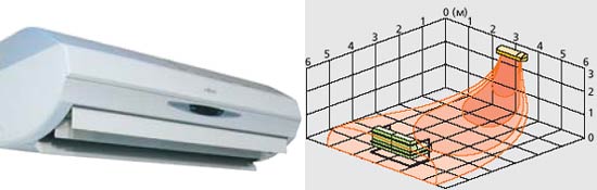 - повышенная комфортность кондиционирования, предотвращение неоправданных тепловых потерьГоризонтальная струя воздуха в режиме охлаждения