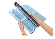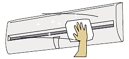 При помощи электрического моторчика, встроенного во внутренний блок кондиционера, фильтр выдвигается наружу и протягивается через систему очистки от пыли. затем очищенный фильтр задвигается обратно.