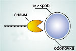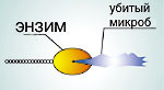 1. Энзим находится рядом с еще не поврежденным микробом.