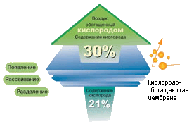 В результате концентрация кислорода в воздухе, поступающем во внутренний блок кондиционера, достигает примерно 30%, а его концентрация в помещении - 21%. Обогащенный кислородом воздух наполняет помещение, обеспечивая оптимальный баланс кислорода для жизнедеятельности человека.