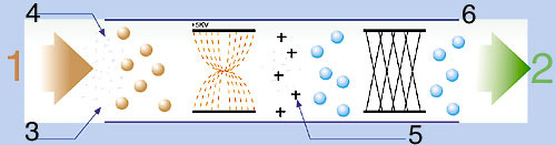 5 - положительно заряженные частицы пыли, прошедшие между электродами