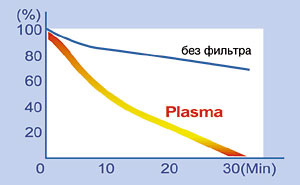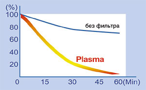 Плазменный фильтр очистки воздуха в кондиционерах - сплит-системах быстро устраняет неприятые запахи. Интенсивность запаха в помещении снижается за полчаса примерно в 5 раз, а за 1 час работы кондиционера с плазменным фильтром запахи устраняются практически полностью.