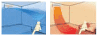 В этом режиме происходит более равномерная циркуляция воздуха в помещении, что исключает возможность возникновения сквозняков. Для более интенсивного кондиционирования воздуха в помещение в режиме охлаждения воздушный поток направляется вдоль плоскости потолка, а в режиме обогрева теплый воздушный поток направляется почти вертикально вниз.