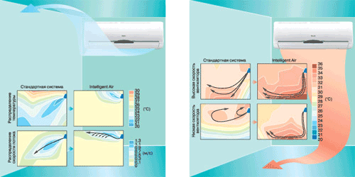В этом режиме происходит более равномерная циркуляция воздуха в помещении, что исключает возможность возникновения сквозняков.