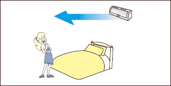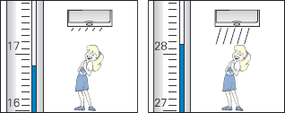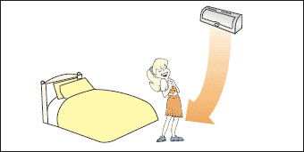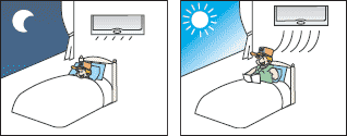 При включении в режим охлаждения воздух направляется широким потоком сверху вниз для создания равномерного температурного фона в помещении и избежания прямого попадания на людей струи холодного воздуха.