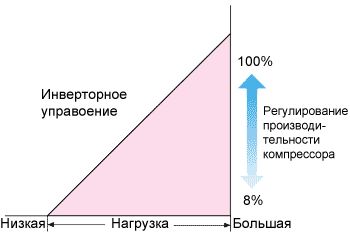 Применение инверторного управления позволяет значительно снизить потребление электроэнергии. Кондиционеры с инверторным управлением быстрее выходят на заданный режим работы, точнее поддерживают температуру и имеют более низкие шумовые характеристики.