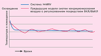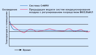 Предыдущие модели кондиционирования воздуха с регулированием посредством ВКЛ/ВЫКЛ не могут поддерживать постоянную температуру из-за периодических остановок системы.