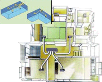 Обычная система кондиционирования имеет ограниченные возможности, так как она может быть разветвлена всего лишь один раз. В этом отношении компания Haier существенно продвинулась, сделав возможным последовательное подсоединение блоков с помощью соединения нескольких магистральных труб. При этом можно создавать свободную комбинацию за счет применения рефнетов типа «Comb» (гребенка) или типа «Y».