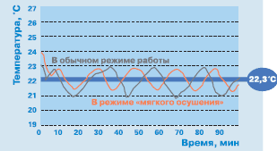 Сравнение температурных параметров в обычном режиме и режиме «мягкого осушения»