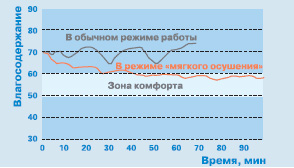 Сравнительная влажностных характеристик в обычном режиме и режиме «мягкого осушения»