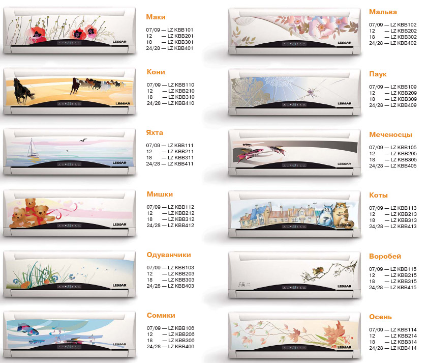 Специалисты LESSAR создали нестандартный продукт – сменные панели для кондиционеров в стиле «акварель» – AQUARELLE. Такие «дизайнерские» панели в полной мере отвечают вкусам тех, кто ценит и хочет иметь в своем обиходе оригинальные, неповторимые вещи.