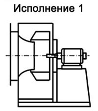 Исполнение 1 - рабочее колесо вентилятора закреплено непосредственно на валу электродвигателяИсполнение 1 - рабочее колесо вентилятора закреплено непосредственно на валу электродвигателя