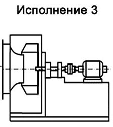 Исполнение 3 - рабочее колесо вентилятора соединяется с электродвигателем при помощи соединительной муфтыИсполнение 3 - рабочее колесо вентилятора соединяется с электродвигателем при помощи соединительной муфты