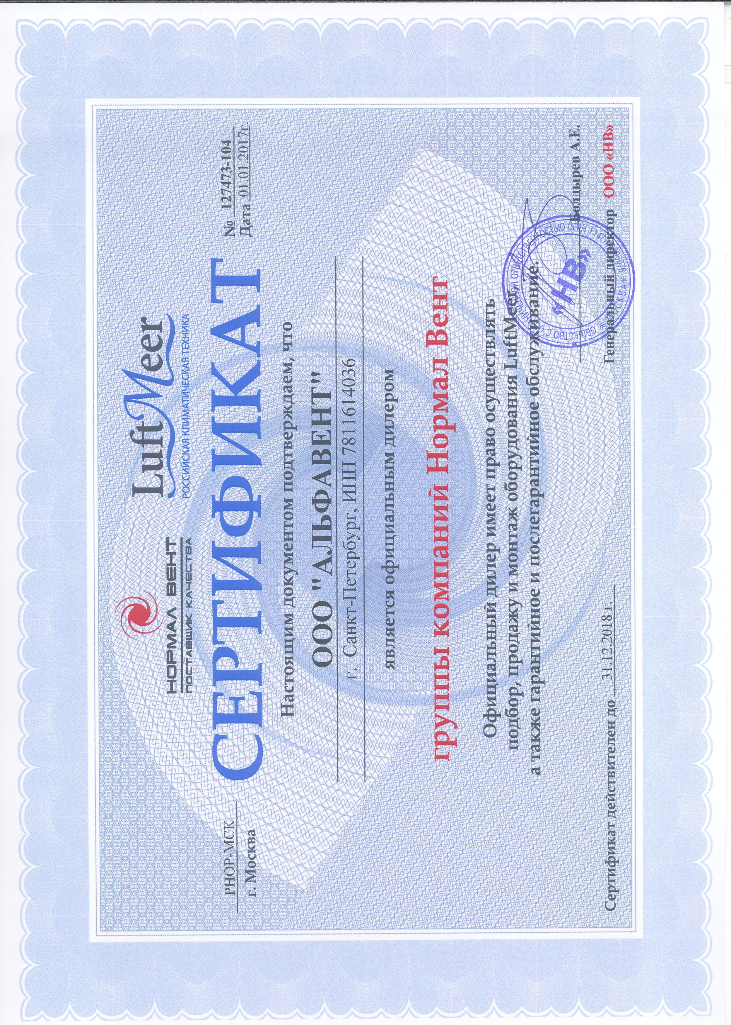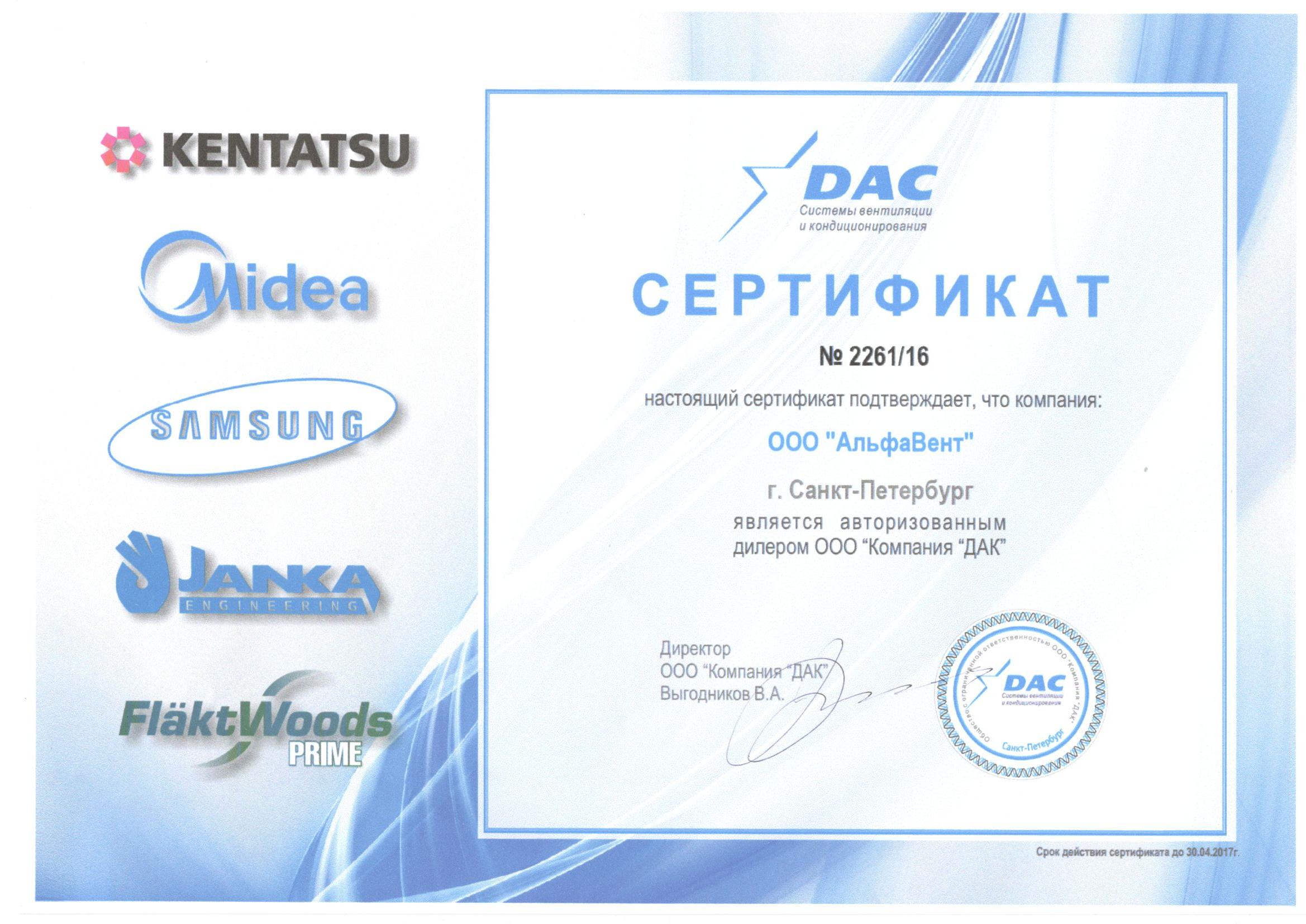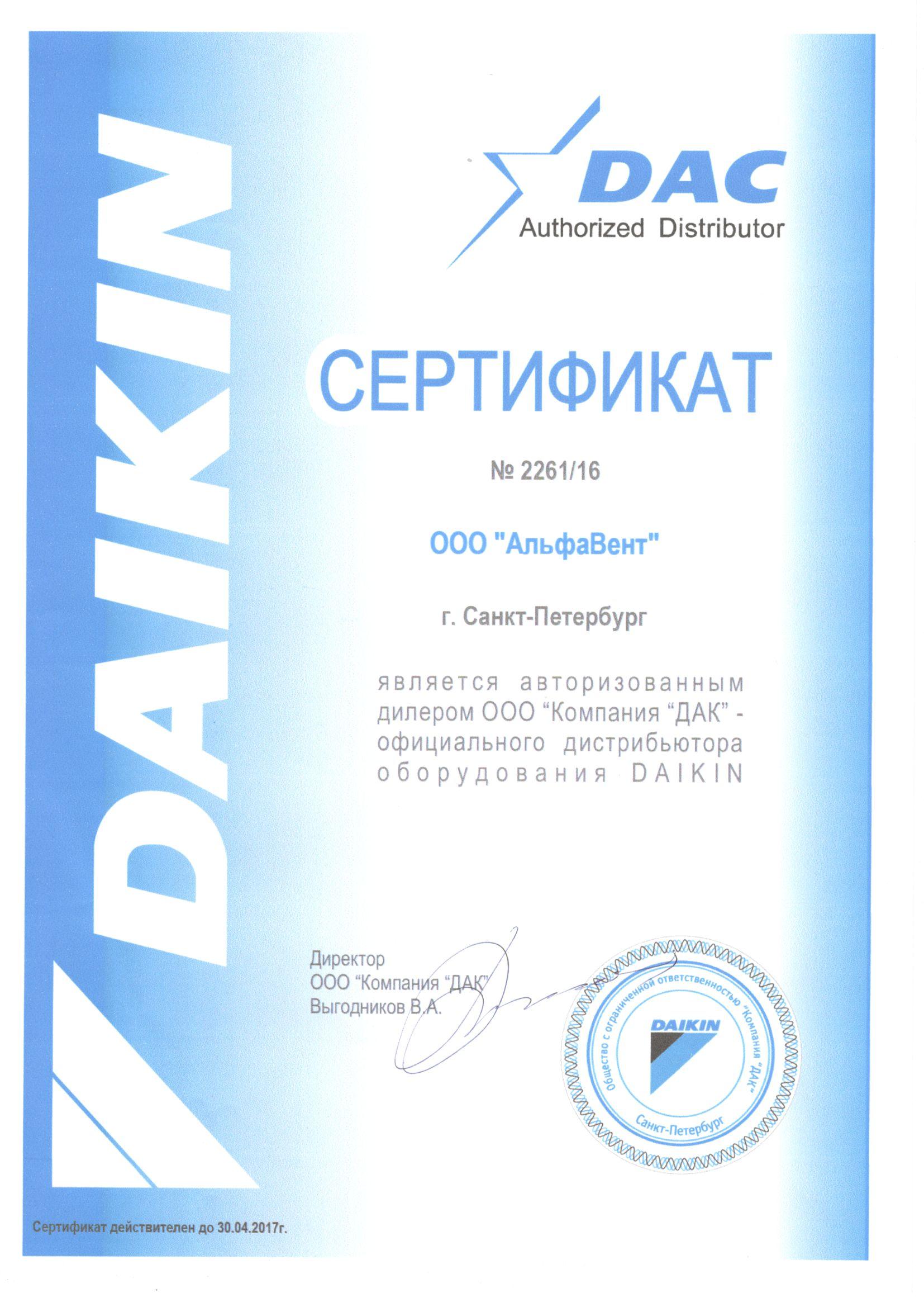 Сертификат авторизованного дилера компании DAC по бренду Daikin