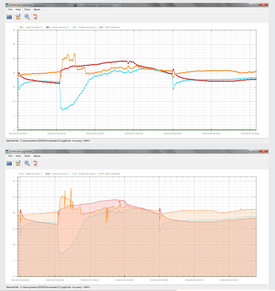 Komfovent LogPlotter - инструмент анализа работы установки с контроллером C5Компания KOMFOVENT разработала компьютерную программу "Komfovent LogPlotter", предназначенную для анализа работы установки в течение последних 7 дней.