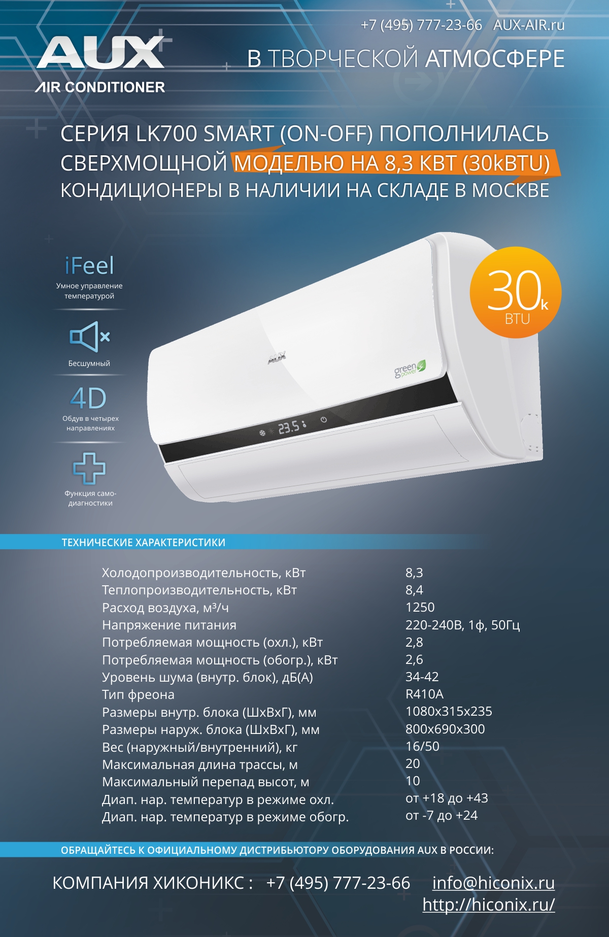 Новинка в серии LK700 Smart (On-Off) от AUXКондиционеры в наличии на складе в Москве.