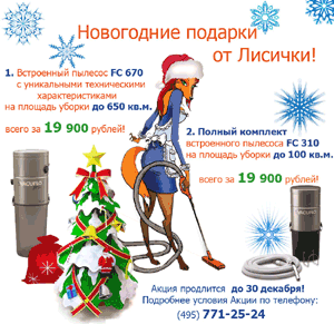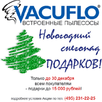 1. Только в декабре: акция «Новогодний снегопад подарков!». Всем, кто приобретает встроенный пылесос VACUFLO – подарки до 15 000 рублей!