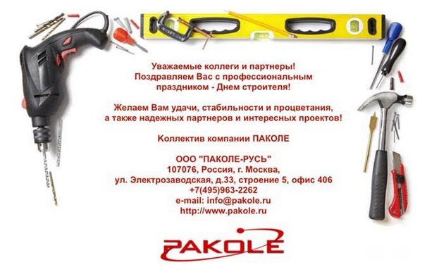 Поздравление с Днем строителя от ПаколеКомпания ПАКОЛЕ-РУСЬ поздравляет с праздником.