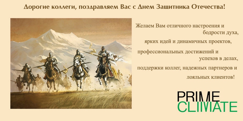 Компания «Прайм Климат» поздравляет коллег с Днем Защитника Отечества!Поздравление от компании «Прайм Климат».