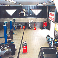 Пример отопления помещения станции технического обслуживания (СТО). Воздух подается в трех направлениях непосредственно из воздухораспределительных отверстий теплогенератора (без использования воздуховодов). Отработанные газы выводятся наружу при помощи дымохода. На теплогенераторе установлена жидкотопливная горелка, поскольку на СТО всегда в наличии дизельное топливо.