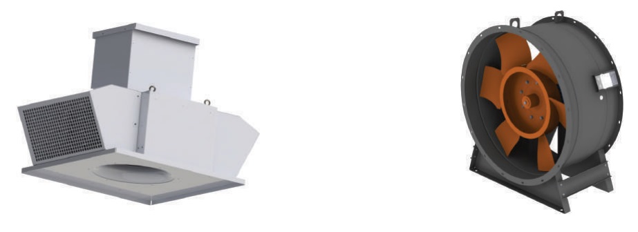 Оборудование: вытяжные вентиляторы противодымной системы вентиляции серии SHAULA SE ROOF Приточные и вытяжные осевые вентиляторы противодымной системы вентиляции SHAULA AX.