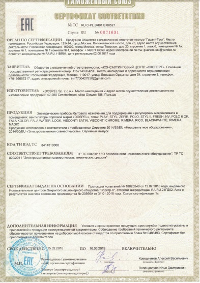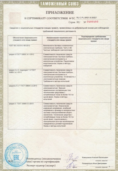Сертификат соответствия на электрические бытовые приборы Dospel (стр. 2)