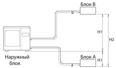 | Максимальный перепад высот между внутренними блоками (H2) | 10 м |