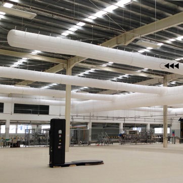 Любая текстильная система распределения воздуха многократно легче аналогичной системы металлических воздуховодов. Это принципиально упрощает доставку и монтаж, а также существенно сокращает транспортные расходы, позволяет устанавливать текстильные воздуховоды в помещениях с ограниченными нагрузками на кровлю.