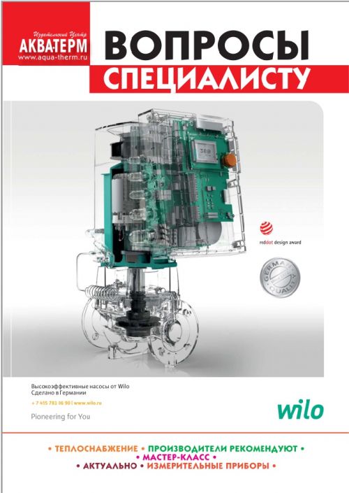 В новом номере журнала «Аква-Терм: вопросы специалисту» 2014 вы найдете ответы на вопросы, посвященные системам теплоснабжения и водоснабжения, контрольно-измерительной аппаратуре, энергосберегающим насосам нового поколения, системам контроля протечки воды.