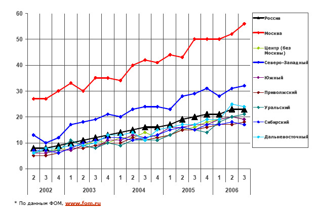 Активно растет российская аудитория интернета. По результатам проведенных исследований Romir monitoring, в IV квартале истекшего года 21 % населения России старше 18 лет (а это около 24 млн человек) использует интернет.