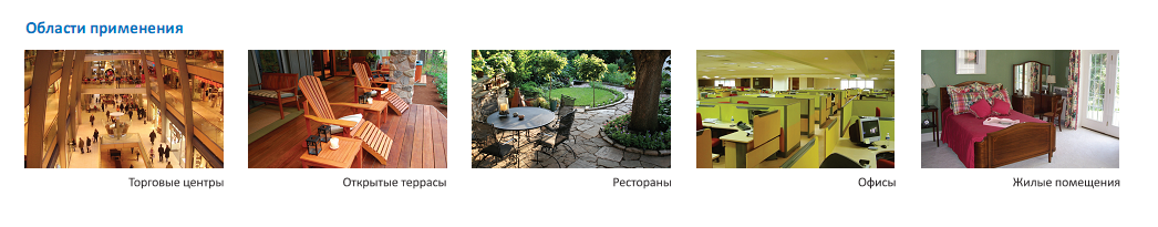 Испарительные охладители используются для охлаждения воздуха в помещениях различного назначения и размера: в торговых центрах, офисах, ресторанах, в жилых и промышленных помещениях, в оранжереях и так далее. Эти устройства незаменимы в тех случаях, когда невозможно полностью изолировать помещение от внешней среды для установки системы кондиционирования — в летних кафе, на верандах, открытых сценах.