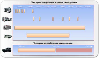 Так как чиллер является наиболее дорогим элементом СКВ, основные затраты возникают на этапе, предшествующем вводу СКВ в эксплуатацию. |