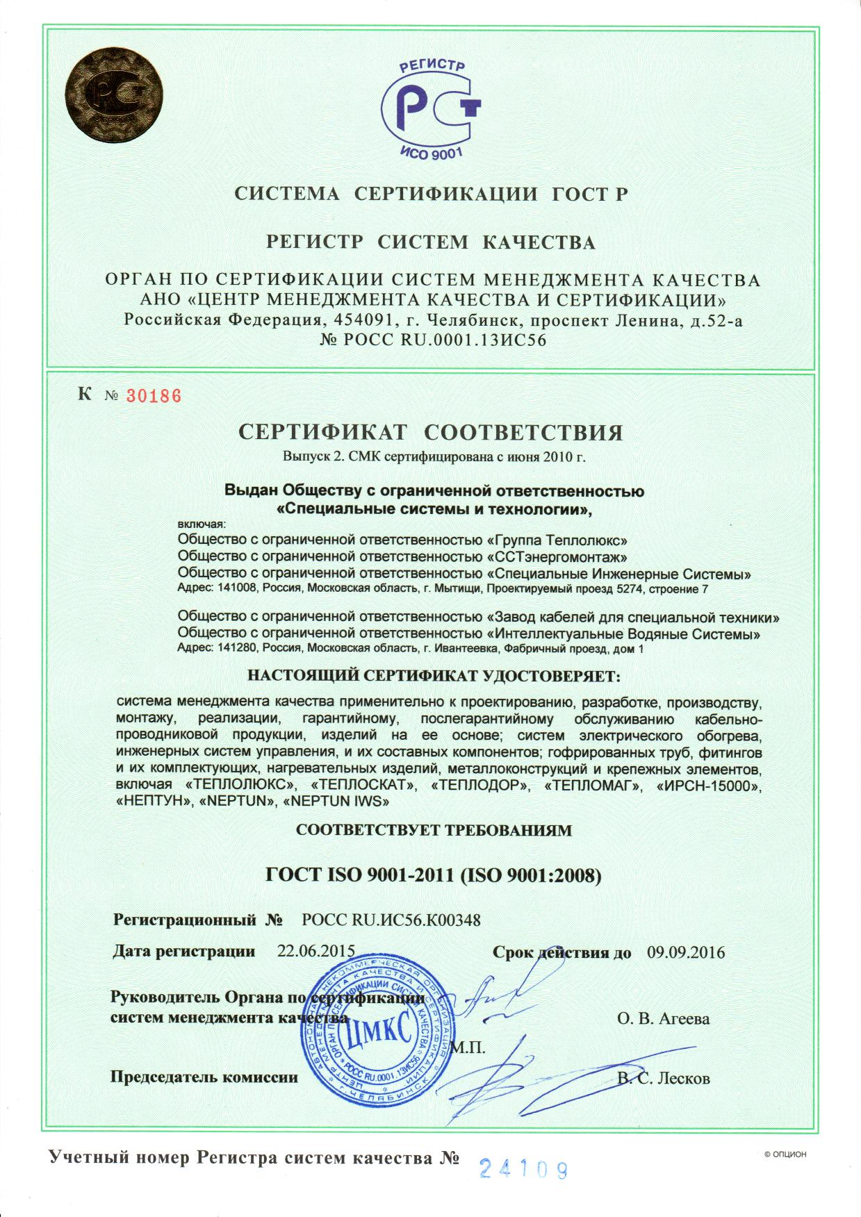 Итоги очередного аудита единой системы менеджмента качества ГКГруппа компаний «Специальные системы и технологии», крупнейший производитель систем электрообогрева, в мае 2015 года успешно прошла второй надзорный аудит на соответствие единой системы менеджмента качества требованиям стандартов ISO 9001:2008 и ГОСТ ISO 9001-2011.