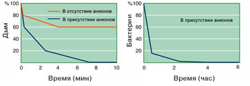 Анионы ликвидируют пыль и дым. При движении воздуха через щетку ионизатора ионы генерируются автоматически под действием электрического поля высокого напряжения (3400 В). Количество анионов может достигать 1 000 000 ед./см3. Анионы нейтрализуют химические газы и частицы пыли в воздухе, заряженные положительно.