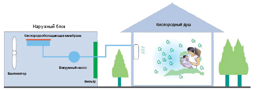 Кислородообогащающая мембрана в наружном блоке может увеличивать концентрацию кислорода до 30%.