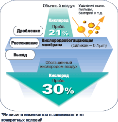 Специальная мембрана повышает концентрацию кислорода до уровня 30%