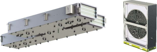 Передовая технология производства центральных кондиционеров со сложной геометрией панелей, основанная на философии самонесущего каркаса, выгодно отличает наше оборудование, от большинства производителей центральных кондиционеров использующих старую европейскую технологию 70-80-х годов, когда на алюминиевый каркас (корпус) крепится панель (сэндвич).