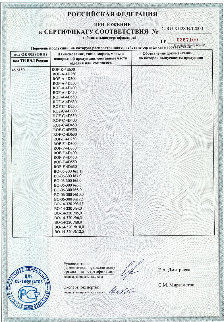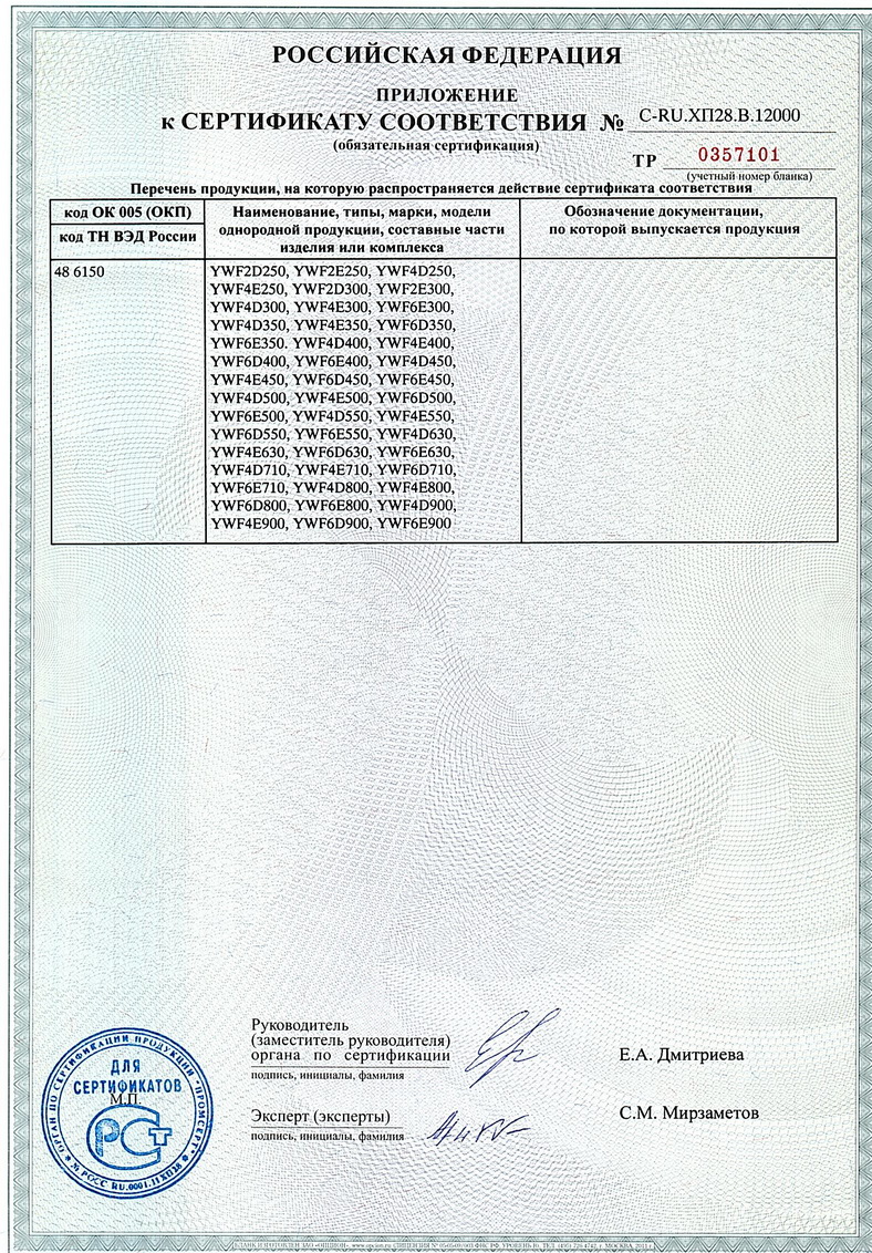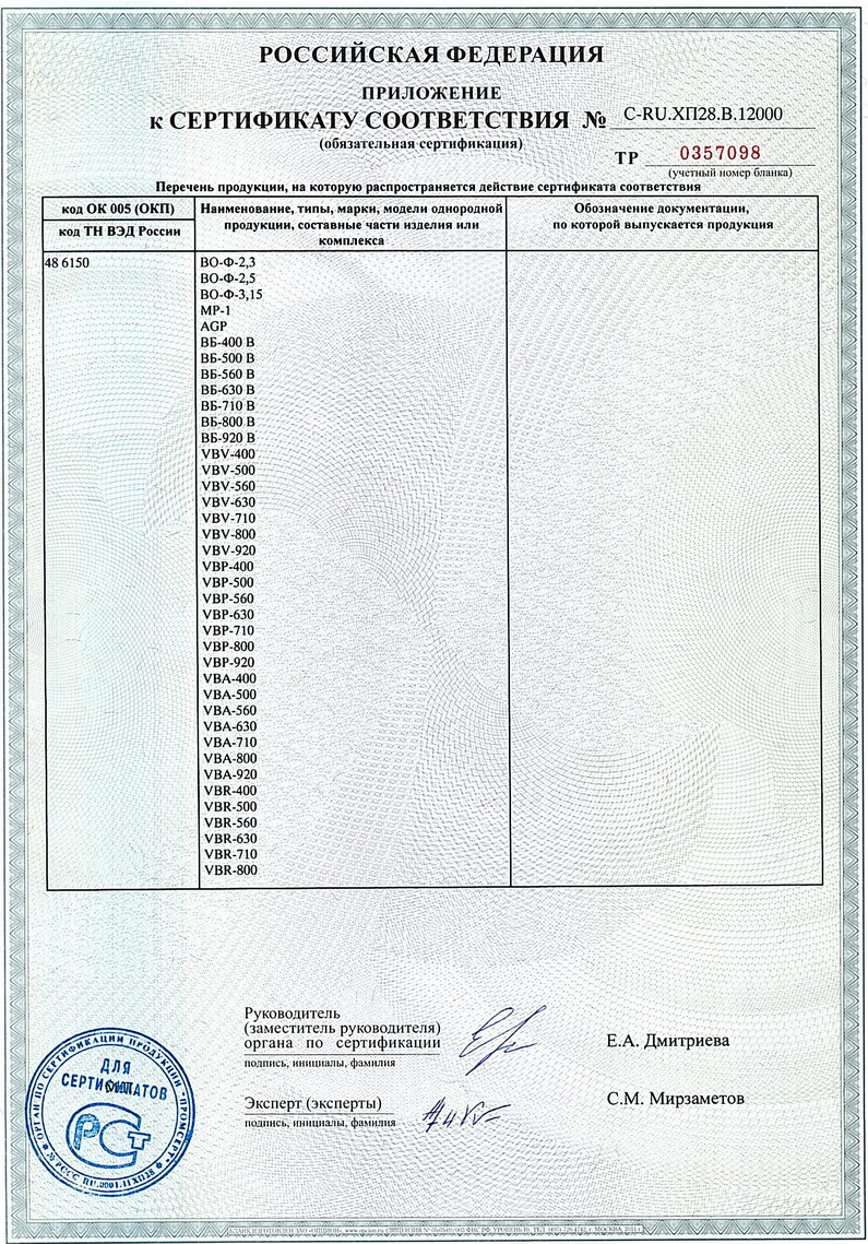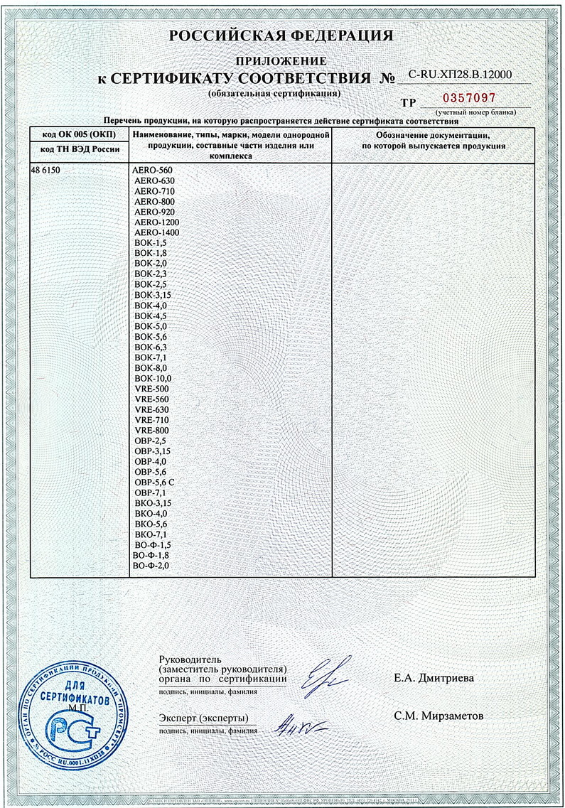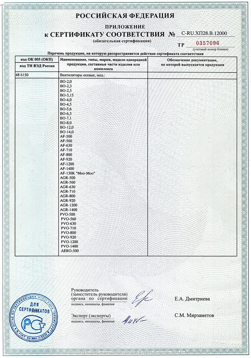 Сертификат соответствия Техническому регламенту о безопасности машин и оборудования. Вентиляторы осевые. Приложение 6
