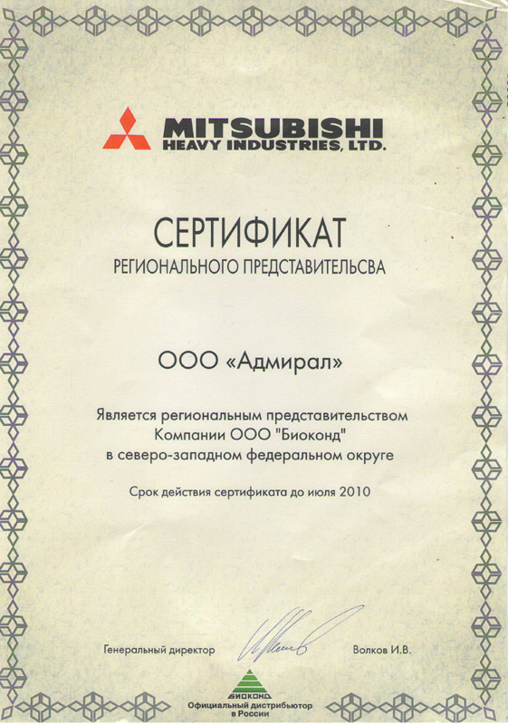 Лицензии и сертификаты компании Адмирал