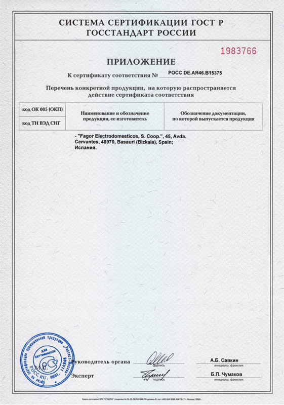 - Сертификат соответствия госстандарта на газовые колонки AEG, прил. 2
