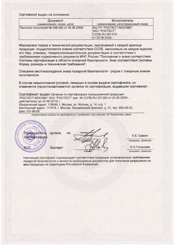 - Сертификат пожарной безопасности на газовые колонки AEG, прил.