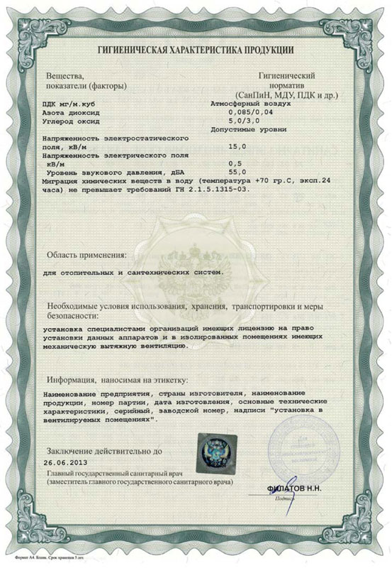 - Санитарно-эпидемиологическое заключение на газовые колонки AEG