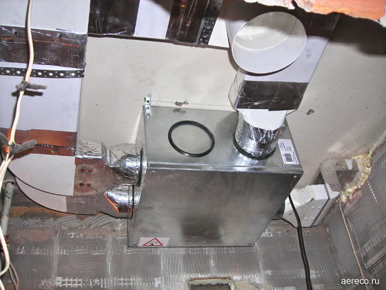 Установлена полная система вентиляция АЭРЭКО с применение приточных стеновых клапанов EHT и вентилятора VAM.