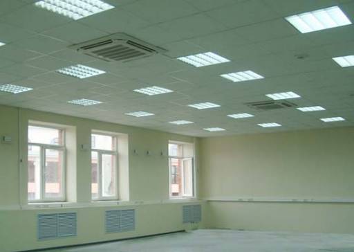Помещение офиса банка с установленной вентиляцией и системой кондиционирования.