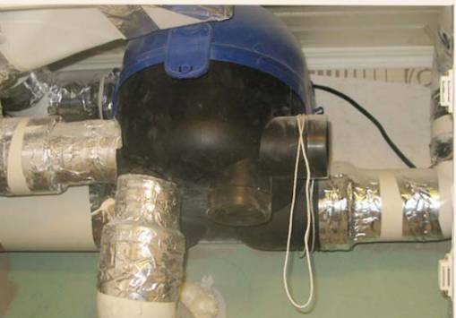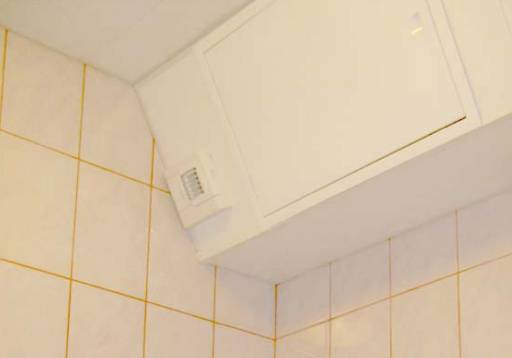 Вытяжное устройство ВХS, установленное в санузле. Наличие ревизионного люка значительно облегчает доступ к вентилятору для технического обслуживания.
