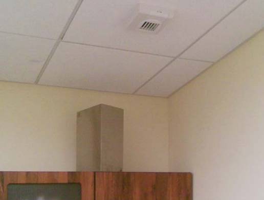 При размещении офиса в жилом здании, подключение к общеобменной вентиляции не допускается. В качестве оптимального решения было предложено оборудовать офис индивидуальной механической системой вентиляции Aereco.