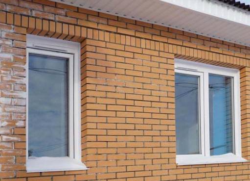 Внешний вид окон с установленными приточными клапанами ЕММ. Наружные козырьки защищают помещение от проникновения воды.