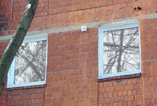 Настенный козырек A-EHT (между окнами) прикрывает отверстие, обеспечивающее приток внешнего воздуха в квартиру.